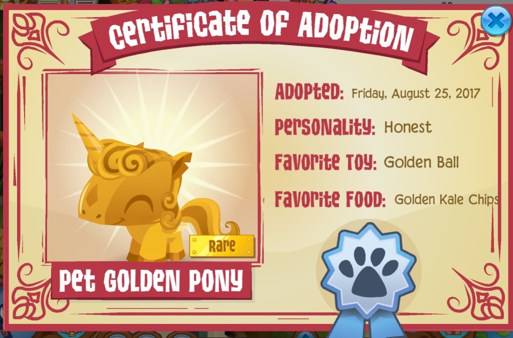 Pet Golden Pony Rare Aj Pet Code Animal Jam World