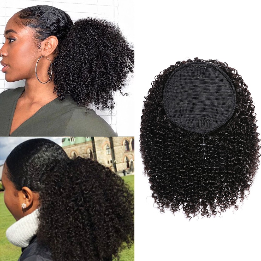 Ready To Ship Kinky Curly Afro Drawstring Ponytail Black Afro